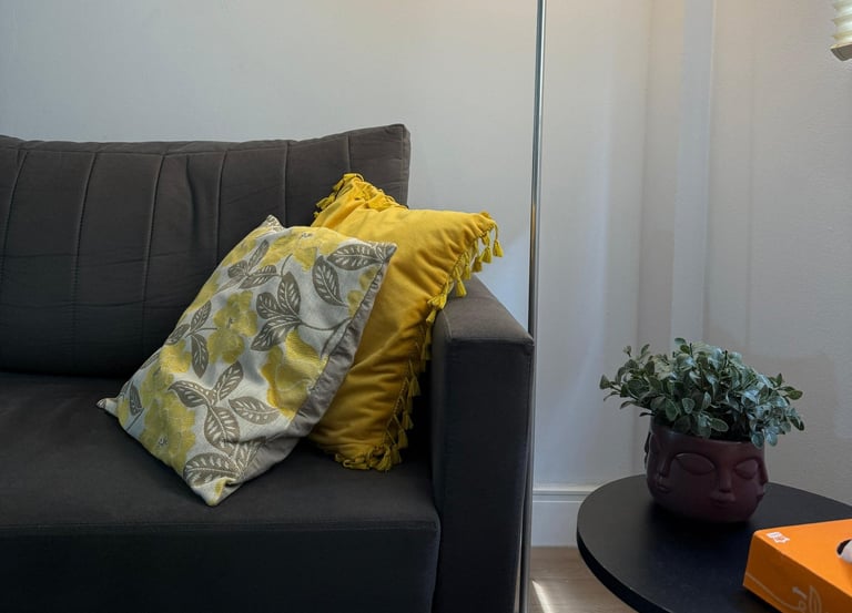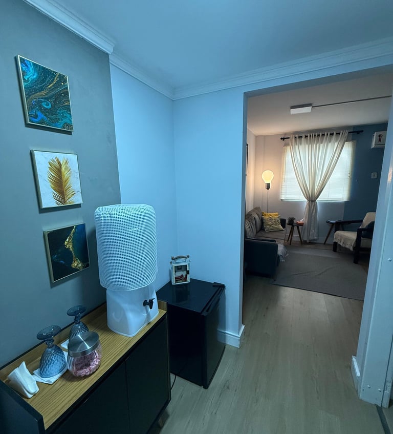 Cada detalhe do meu consultório foi pensado para proporcionar acolhimento, tranquilidade e privacidade. Um ambiente sereno, onde você pode se sentir à vontade para compartilhar suas vivências e iniciar seu processo de cuidado emocional.